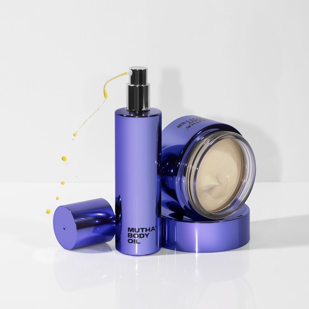 Body Oil prepares. Body Butter seals. Apply the oil first to deliver deep botanical nourishment, then follow with the butter to lock it in and amplify results. Together, they create a layered hydration ritual that goes deeper than either product alone.